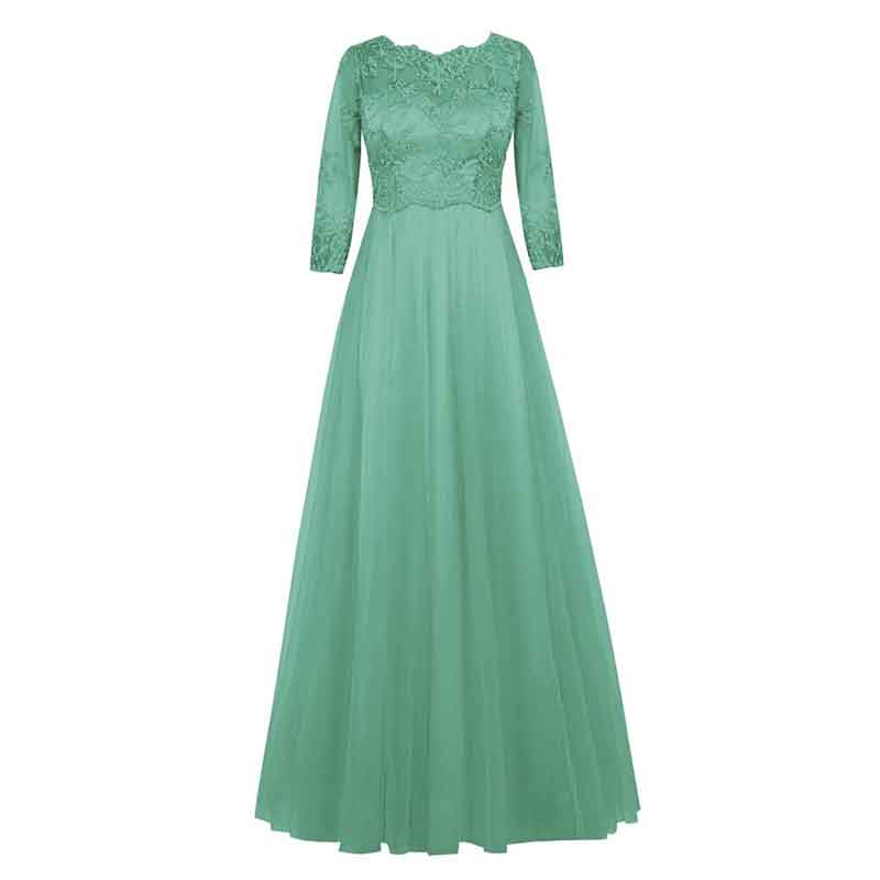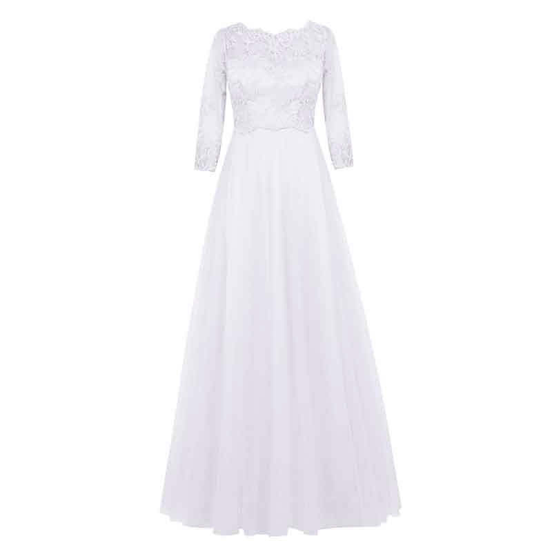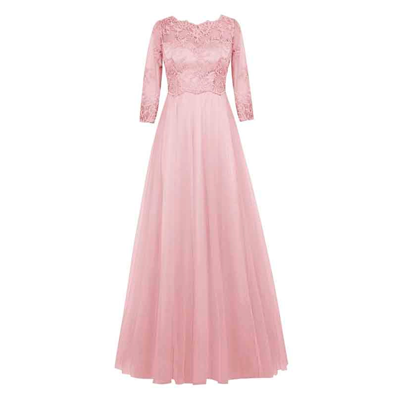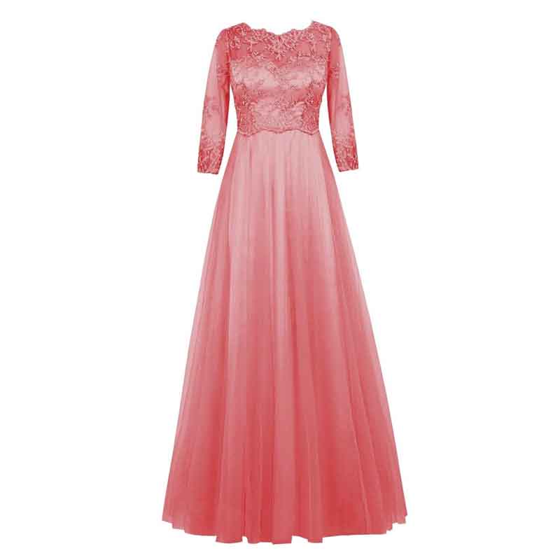Women Formal Prom Wedding Bridesmaid Dress with Sleeve Lace Wedding Guest Dress