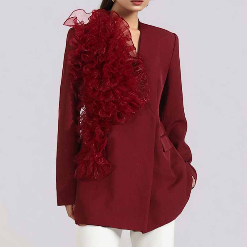 Women's Burgundy Blazer With Flounce Jacket
