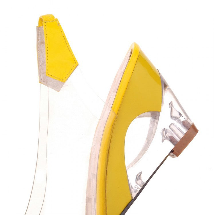Women's Clear Crystal Wedge Sandals Peep Toe Glitter Flower Platform High Heel Dress Sandal