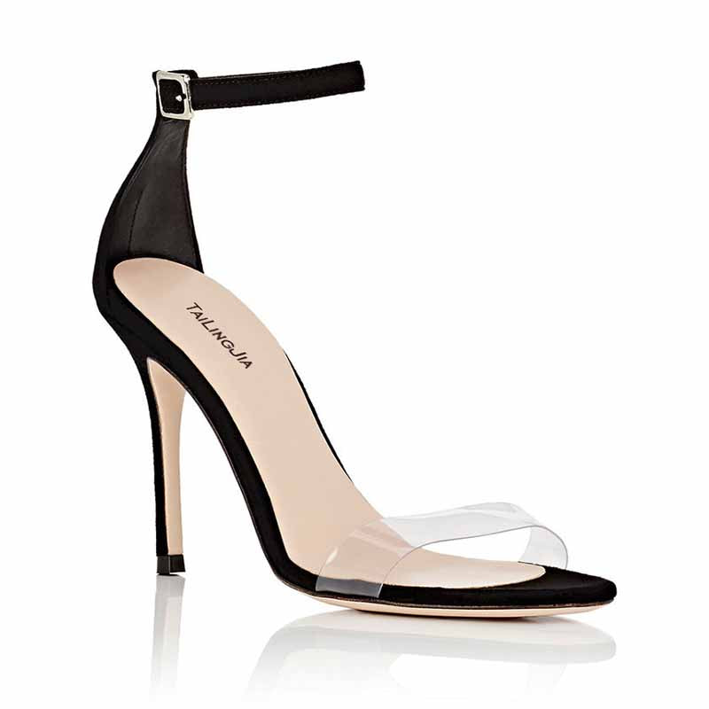 Clear Straps Heels With Ankle Strap Sexy Stiletto Dress Shoes