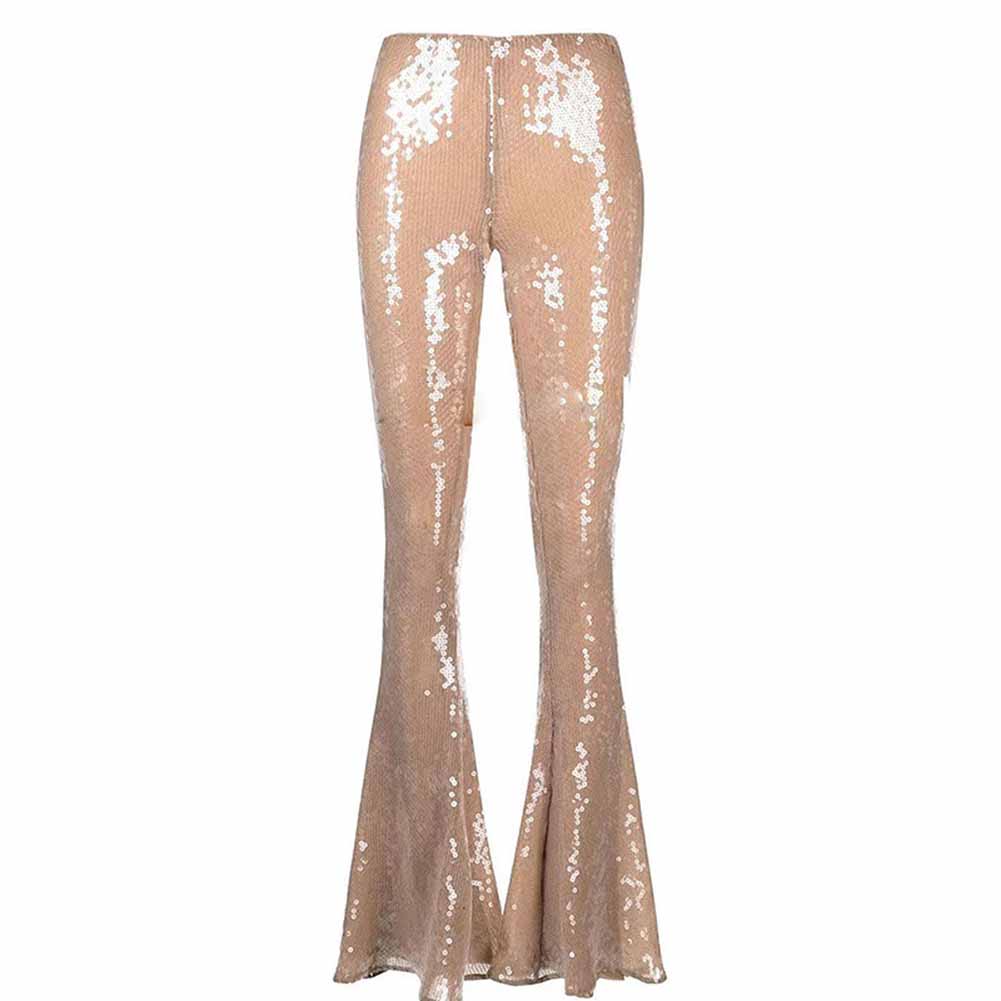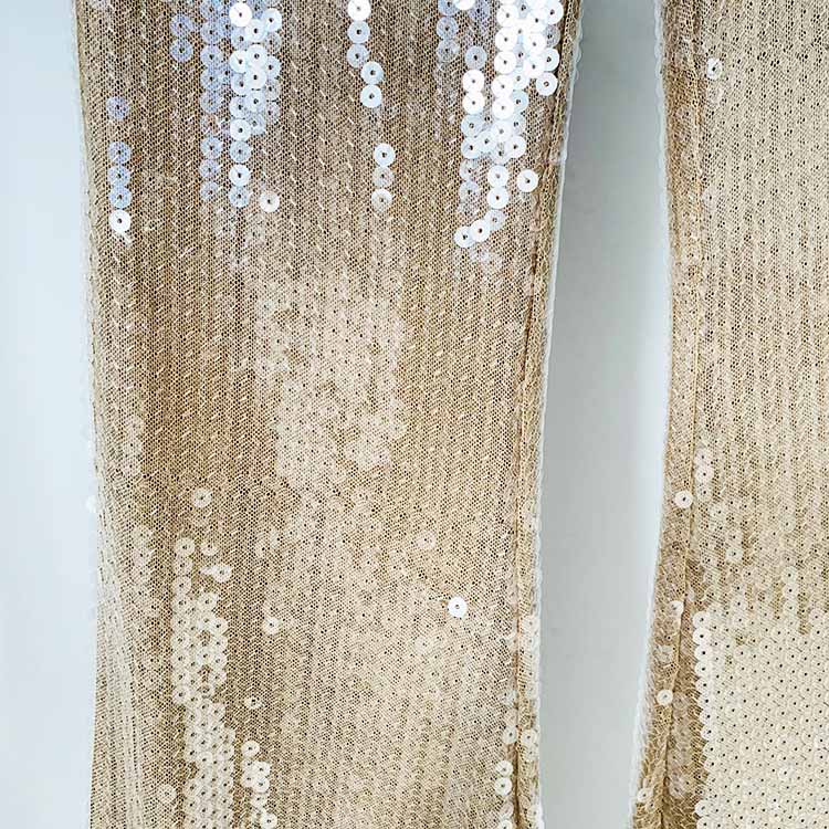 Womens Gold Bling Gold Party Pants Sparkle Sequin Stretch Mesh Flared Pants