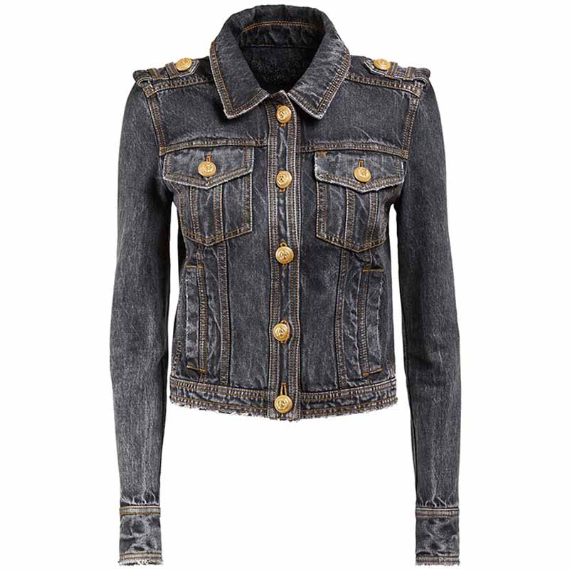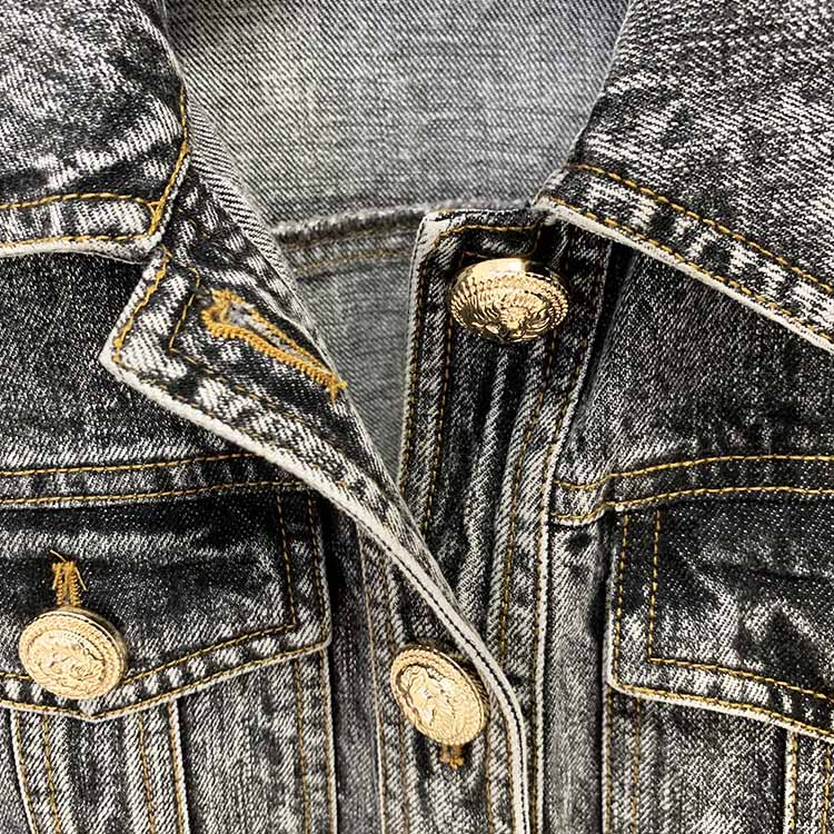 Women's Golden Buttons Fitted Denim Fitted Jacket Black Activewear Coat