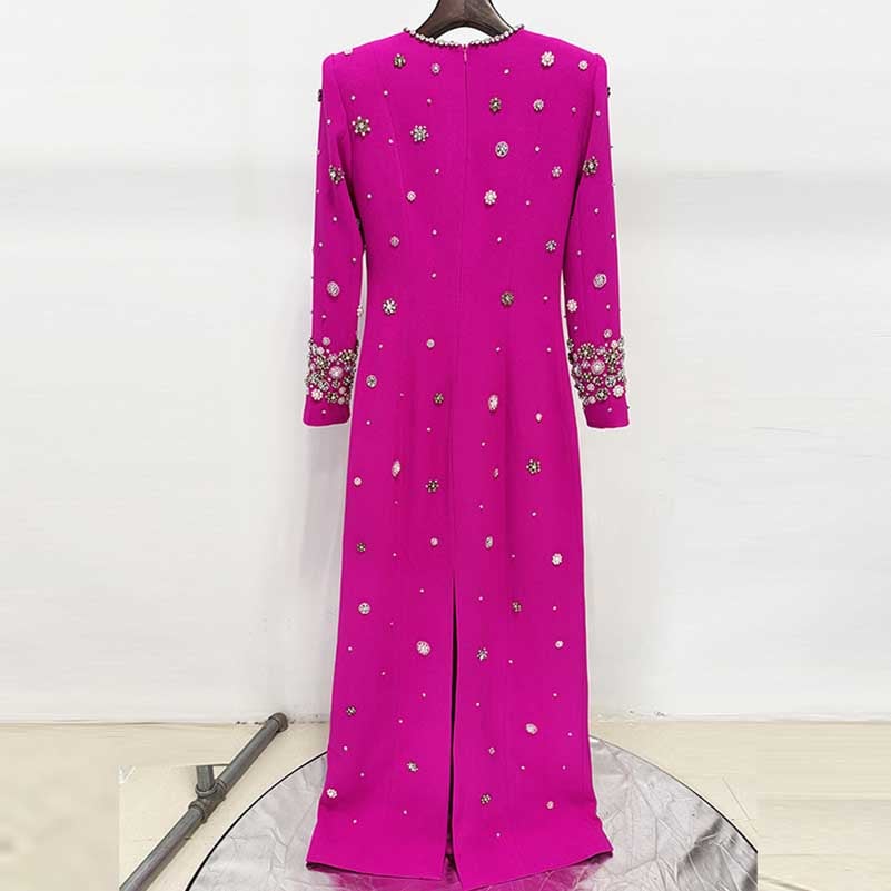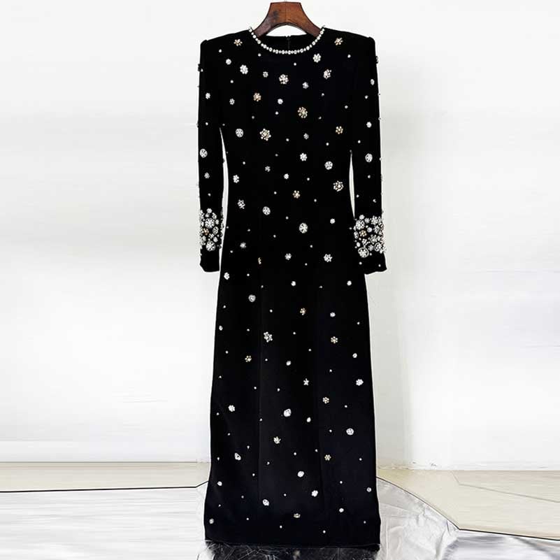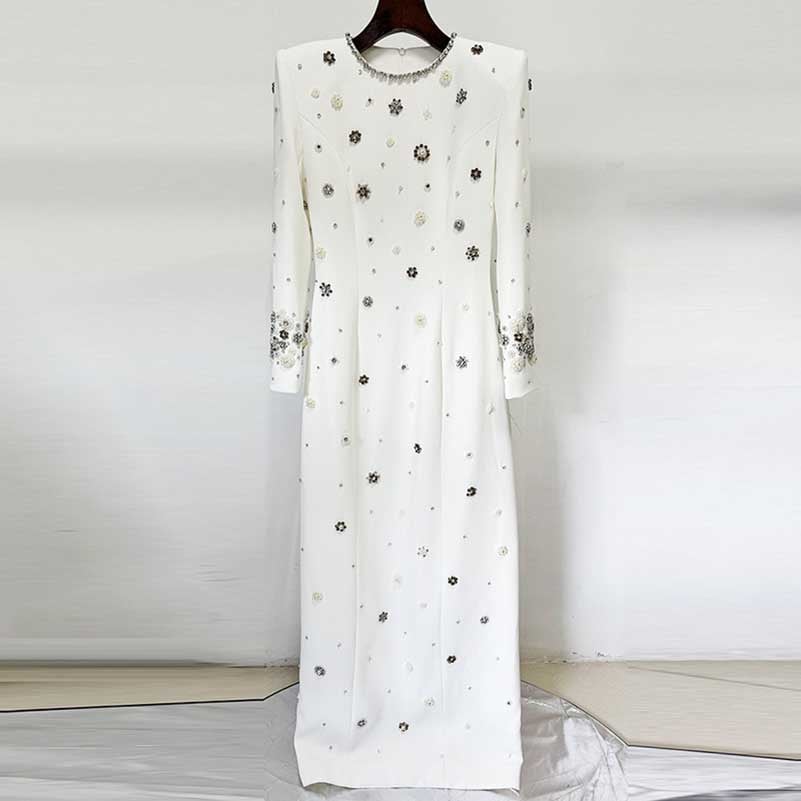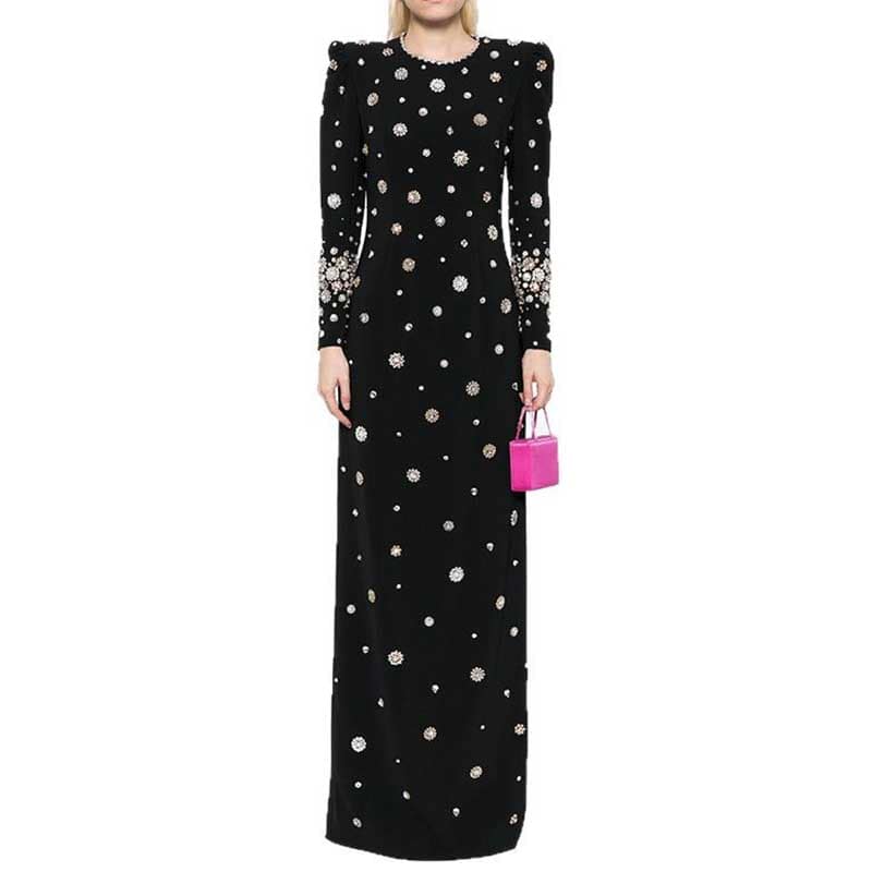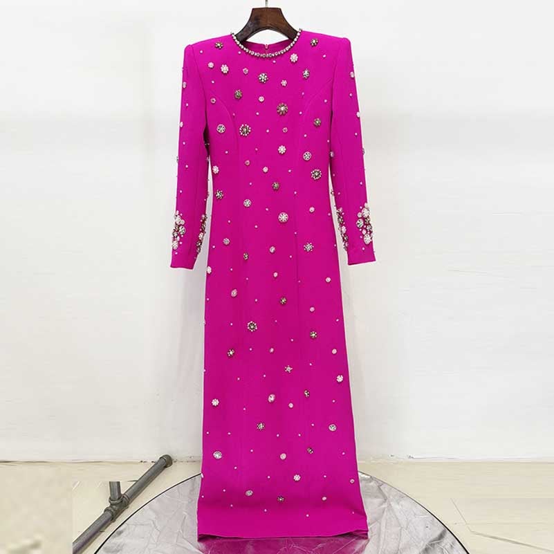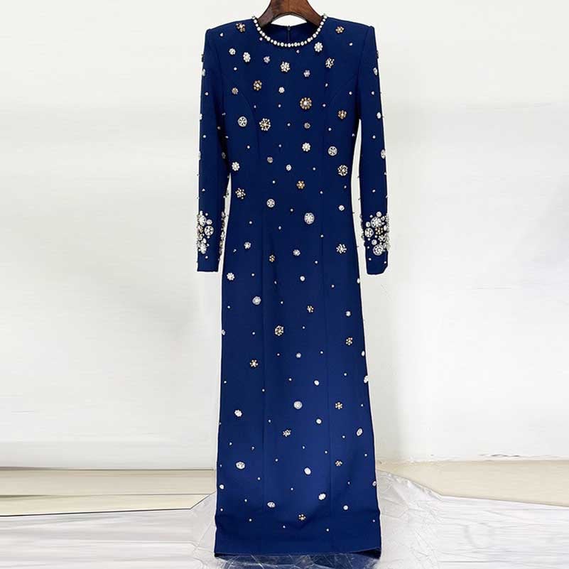 Womens Long Sleeves Beaded Gown Long Evening Dresses