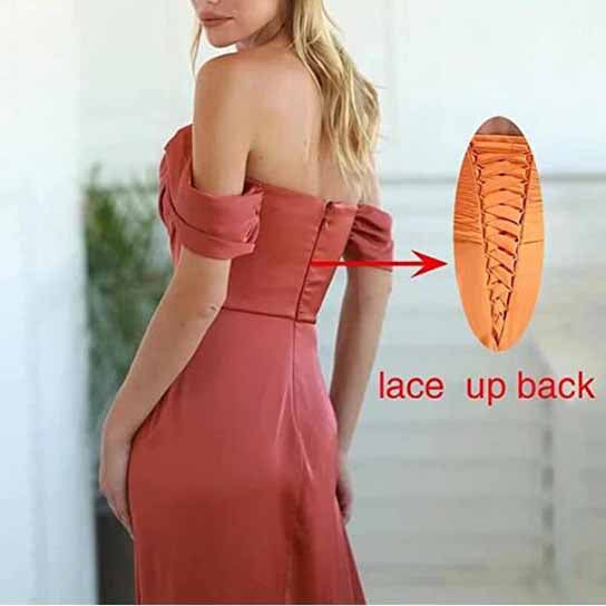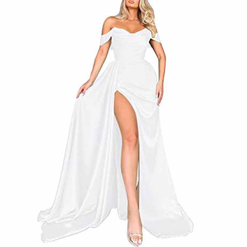 Women's Off The Shoulder Prom Dresses Slit Satin Long Evening Formal Dress