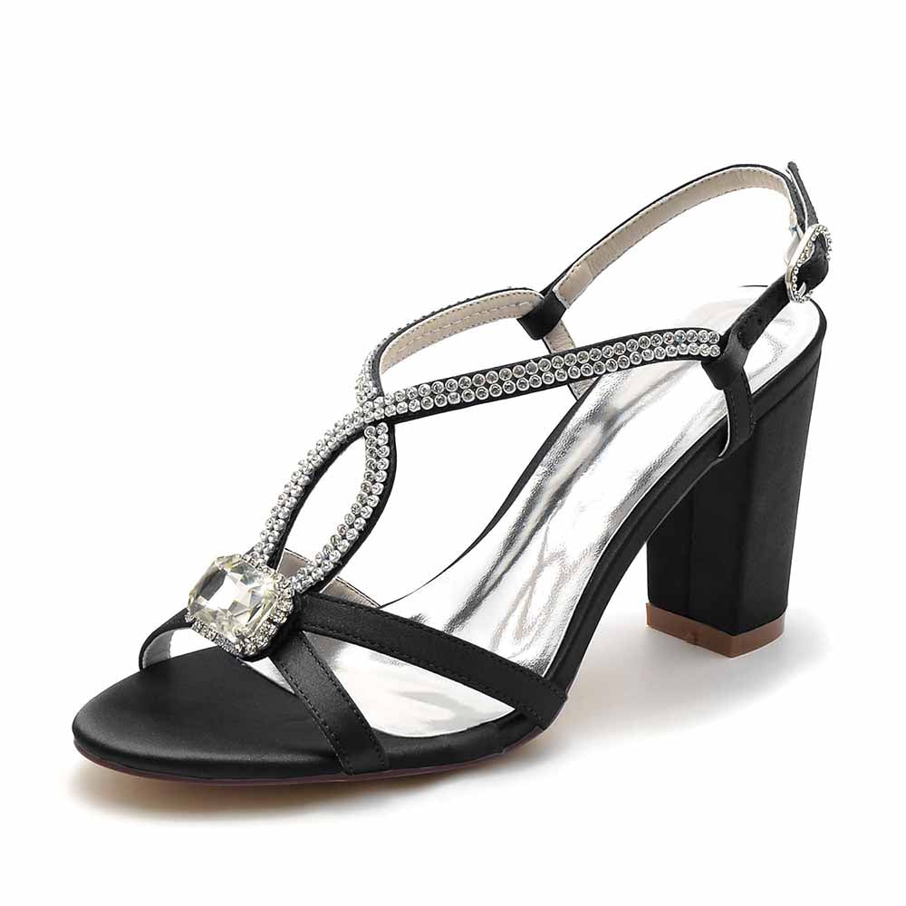 Women's Open Toe Heeled Sandals Beaded Satin Pump Party Prom Sandals