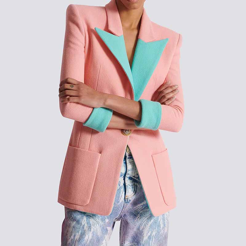 Women's Single Breasted Blazer Double Crepe Two-Tone Jacket