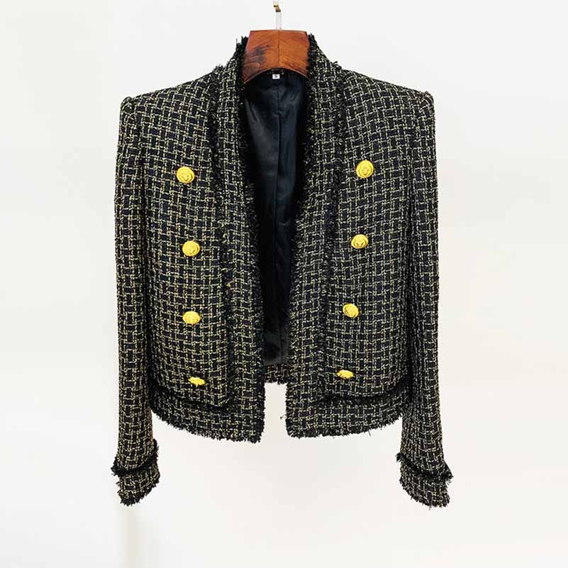 Women's tweed fringe cardigan jacket Gold Plaid jacket